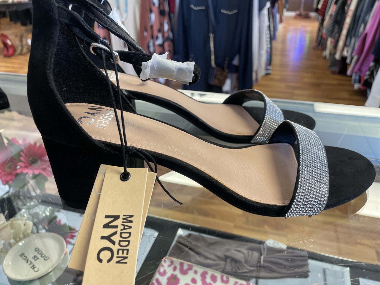 The Madden NYC Women's Illie City Black Bling Sandals in size 9 are a stylish and comfortable option for women looking to add a touch of glamour to their summer wardrobe. The strappy design and black color give these sandals a chic and modern look, perfect for a day out in the city. The synthetic upper material ensures durability, while the mid heel height provides support for all-day wear. Upgrade your shoe collection with these trendy sandals from Madden NYC.