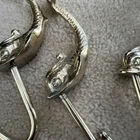 The product is a set of 3 vintage Koi-shaped brass hooks made in Japan. These gold-colored hooks are a unique and decorative addition to any space, showcasing traditional Japanese craftsmanship. The intricate design of the hooks adds a unique touch of elegance and charm to any room, making them a stylish and functional accent piece. Hard to find, and excellent condition. Does not come with screws.