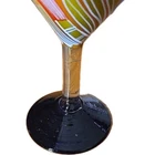 This hand-painted wine glass is made in Mexico and features a vibrant multicolor floral design. The glass is shaped like a typical wine glass, with dimensions of 7.75 inches in height and 3.5 inches in width. The model is known as "Mexixo" and it is made of glass, weighing 15.4 ounces. This elegant and unique wine glass is perfect for adding a touch of artistry to your dining or entertaining experience.