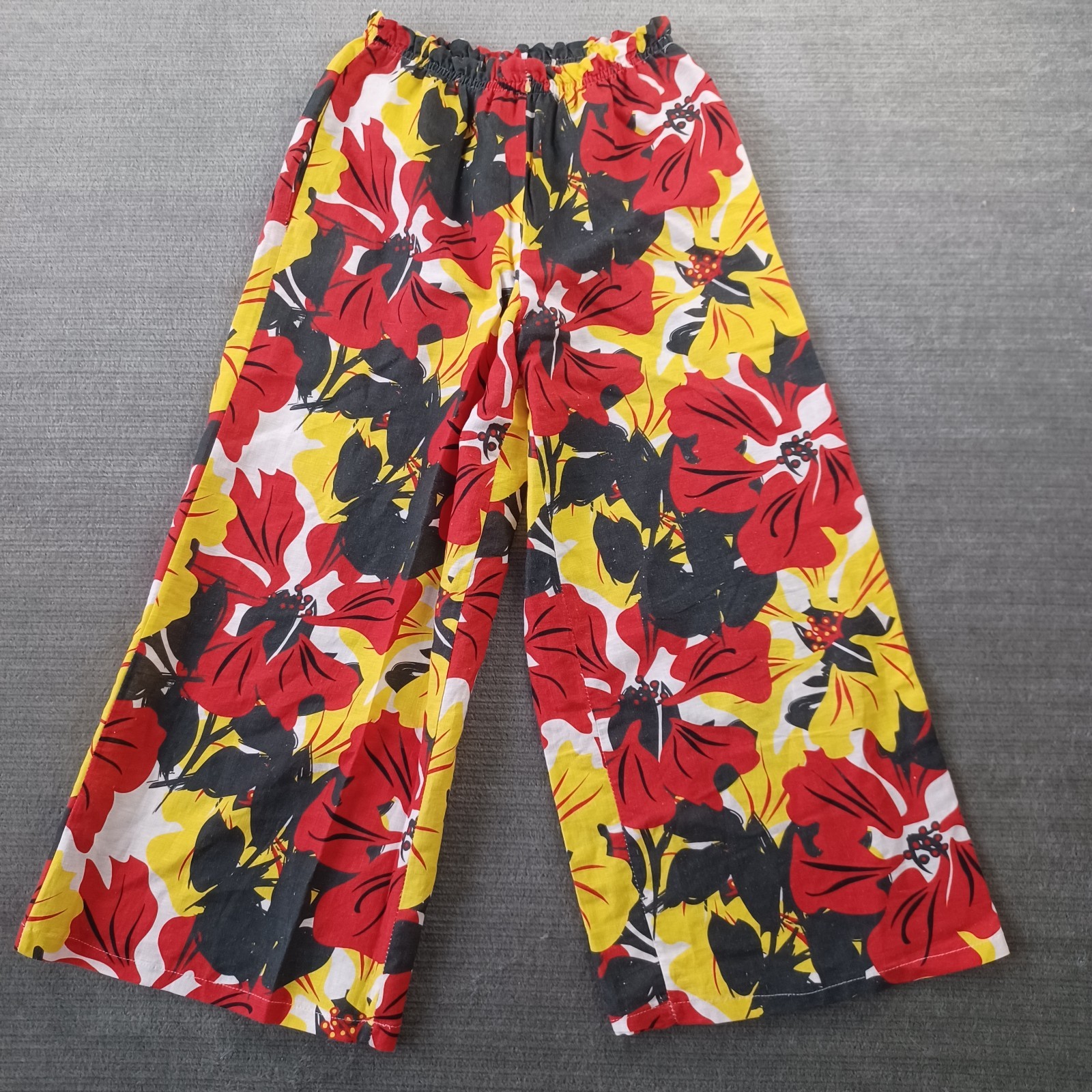 Made in Italy Pants Womens Small Red Floral Wide Leg Elastic Waist Linen Blend\ Good pre-owned condition Please review all photos for details and measurements.