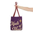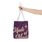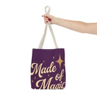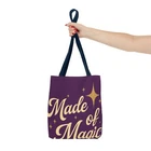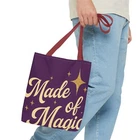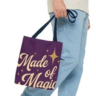 Introducing a stylish Tote Bag that is perfect for the modern-day witch or anyone who loves a touch of magic in their daily routine. Made from 100% durable polyester, this bag is not just eye-catching with its enchanting designs, but also functional, offering plenty of space for all your essentials. Whether you're heading to the farmer's market, a cozy café, or an art class, this tote adds a whimsical vibe to your life. Its reinforced stitching ensures longevity, making it a practical choice for everyday use. Ideal for those who appreciate unique accessories or for gift-giving during holidays like Halloween, birthdays, or just because. This Tote Bag resonates with creative spirits, lovers of nature, and anyone who enjoys expressing their individuality through fashion. Product features - 100% Polyester body for durability and quick drying - Reinforced stitching on handles for added strength - Boxed corners to create extra space - Available in multiple sizes with a large storage compartment - Five color handle options to match your style Care instructions - Remove all items from the bag before cleaning. Suggested to pretreat visible stains with stain remover. Mix warm water with laundry detergent and clean the bag with terry washcloth or a soft bristle brush. Let the bag air dry. EU representative : HONSON VENTURES LIMITED, 3, Gnaftis House flat 102, Limassol, Mesa Geitonia, 4003, CY Product information : Generic brand, 2 year warranty in EU and Northern Ireland as per Directive 1999/44/EC Care instructions : Remove all items from the bag before cleaning. Suggested to pretreat visible stains with stain remover. Mix warm water with laundry detergent and clean the bag with terry washcloth or a soft bristle brush. Let the bag air dry.