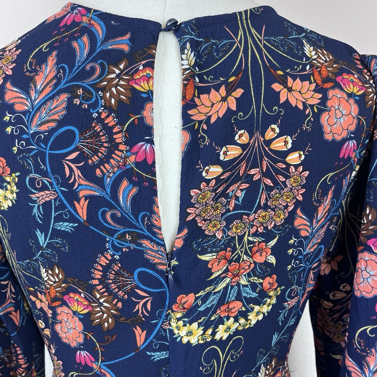 LOFT Dress Women's Size XSP XS Petite Paisley floral 3/4 Sleeve Tie back midi