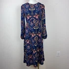 I Madeline Womens Garden Splendor Dress Polyester Midi length Long sleeves Round neckline Zipper and button closure in back A line Empire waist Boho Bohemian Excellent preowned condition Measurements in photos Size XS