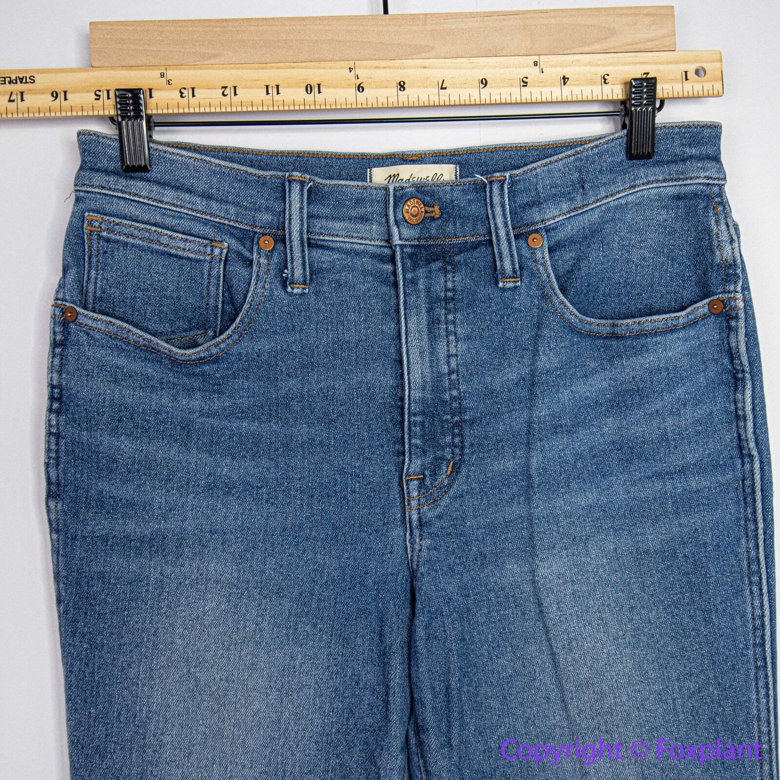 NEW Madewell 10" High-Rise Skinny Jeans Eardley Wash, 29 The cut: complete with the holds-you-in sorcery of our Magic Pockets™ in front, these 10" high-rise skinny jeans are lean and legs-for-days sexy. The fabric: premium stretch ISKO™ denim that hugs the body and bounces back like a pro (aka no 3pm bagginess). Bright authentic medium indigo wash with natural distressing. 95% cotton/3% polyester/2% elastane. Machine wash. Item NI914 The measurements shown are approximate and are provided as a helpful reference, but not a guarantee of fit. Sometimes inseam measuring from the crotch to the hem with a yardstick may yield a slightly different result compared to using a soft tape measure along the seam. Excellent condition. No noticeable flaws or stains or damages. The actual colors may vary due to differences in lighting conditions and computer monitor settings.