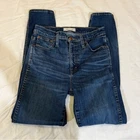 Excellent preloved condition High rise - sits at natural waist Button waist closure Zip fly Belt loops Five pocket design Medium wash with light whiskering and distressing throughout Skinny fit No observable flaws Cotton polyester and elastane blend Machine wash Approximate measurements in inches taken when laid flat Waist 13.5 Rise 11 Inseam 28 Length 38 Approximate measurements in pics Dog friendly home Smoke free home Questions just ask Bundle and save Make offer