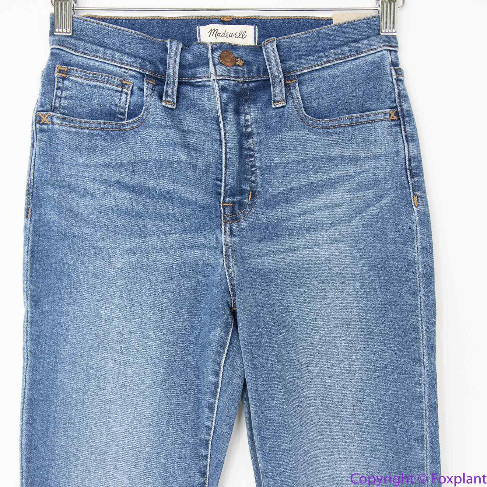 NEW Madewell 10" High-Rise Roadtripper Authentic Jeans Vinton Wash, 25 Lightweight and supercomfy, these 10" high-rise skinny jeans are made of our new Roadtripper Authentic denim that has an old-school rigid look and tons of stretch. Do Well: For each pair made at the Fair Trade Certified™ factory, we contribute to a Community Development Fund managed by the workers. 76% cotton/22% poly/2% spandex denim. Magic Pockets. Machine wash. Import. MD518 Size 25 , approximate laid flat measurements: Waist (without dip, the front and the back of the waistband aligned): 13 1/4'' Rise: 10 1/4'' Inseam: 28 1/4'' Leg opening: 5 1/4'' Measurements provided as a courtesy, not a guarantee of fit. Excellent condition. No noticeable flaws or stains or damages.
