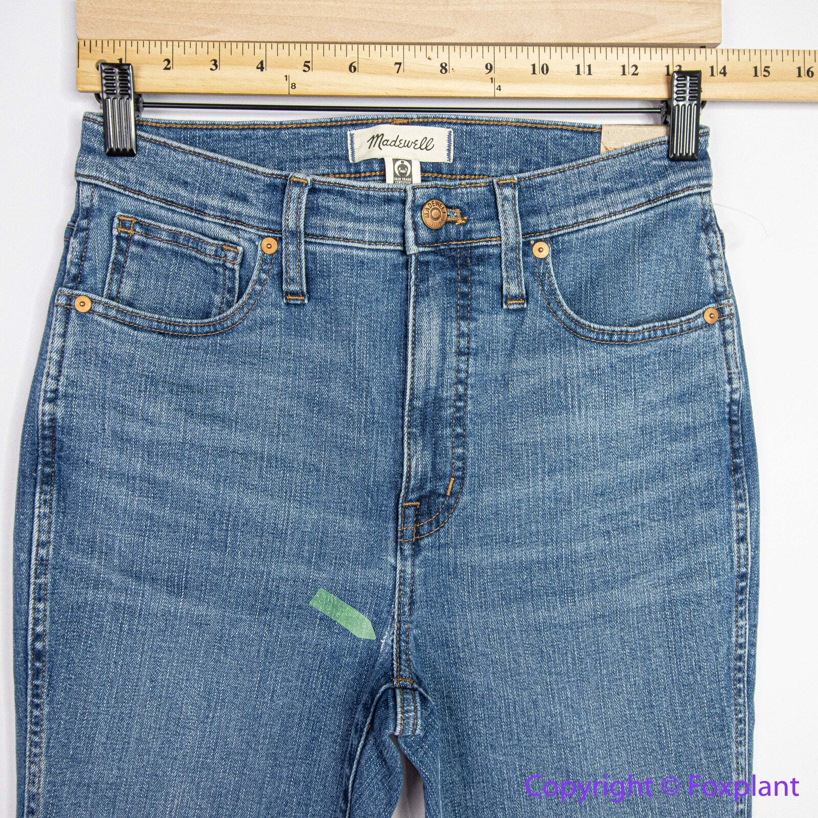 NEW Madewell 10" High-Rise Skinny Jeans in Foregate Wash: Knee-Rip Edition, 28 Please note: one rip near zipper as shown The cut: complete with the holds-you-in sorcery of our Magic Pockets in front, these 10" high-rise skinny jeans are lean and legs-for-days sexy. The fabric: blended with recycled cotton, this premium Japanese denim combines the holds-you-in structure of rigid with a touch of stretch for day-one comfort. high rise, fitted through the hip and thigh with a skinny leg opening. Premium 97% cotton (20% of which is recycled)/3% elastane low-stretch Kaihara denim from Japan Magic Pockets®; knee rip NG235 The measurements shown are approximate and are provided as a helpful reference, but not a guarantee of fit. Sometimes inseam measuring from the crotch to the hem with a yardstick may yield a slightly different result compared to using a soft tape measure along the seam. The actual colors may vary due to differences in lighting conditions and computer monitor settings.