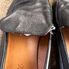 Step into the realm of timeless elegance with these Madewell loafers, where each stride tells a tale of sophistication. Crafted from luxurious leather, they whisper stories of comfort and refinement. Their classic black hue seamlessly complements any ensemble, while the wooden heel adds a touch of rustic charm. • Slip-on design • Wooden heel • Leather upper • Rubber sole • Classic black color Minor scuffs on soles, light fraying on top edge near vamp. Rubber sole provides durability.