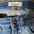 Madewell Sz 28 9" High Rise Destructed Hem Edition Skinny Jeans Light Wash, Distressed, see photos for measurements. Good Pre-owned condition. Tags: High Rise, Casual, Distressed, Skinny