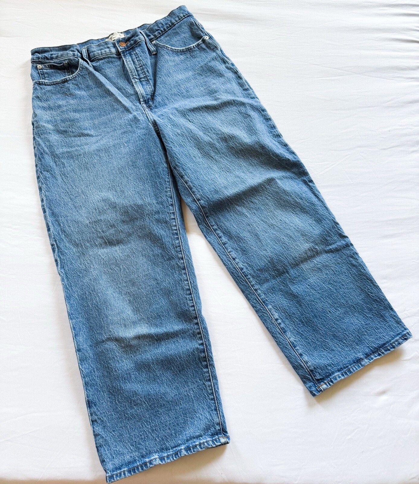 The cut: a recent addition to our Perfect Vintage fam, these cropped jeans have slouchy wide legs and a high fitted waist complete with the holds-you-in sorcery of our Magic Pockets™ in front. The fabric: premium Cone® denim that combines the structure of rigid with a touch of stretch for day-one comfort. Vintage bright medium wash with authentic fading. 99% cotton/1% elastane. Machine wash. Import. SOLD OUT ONLINE retails $128