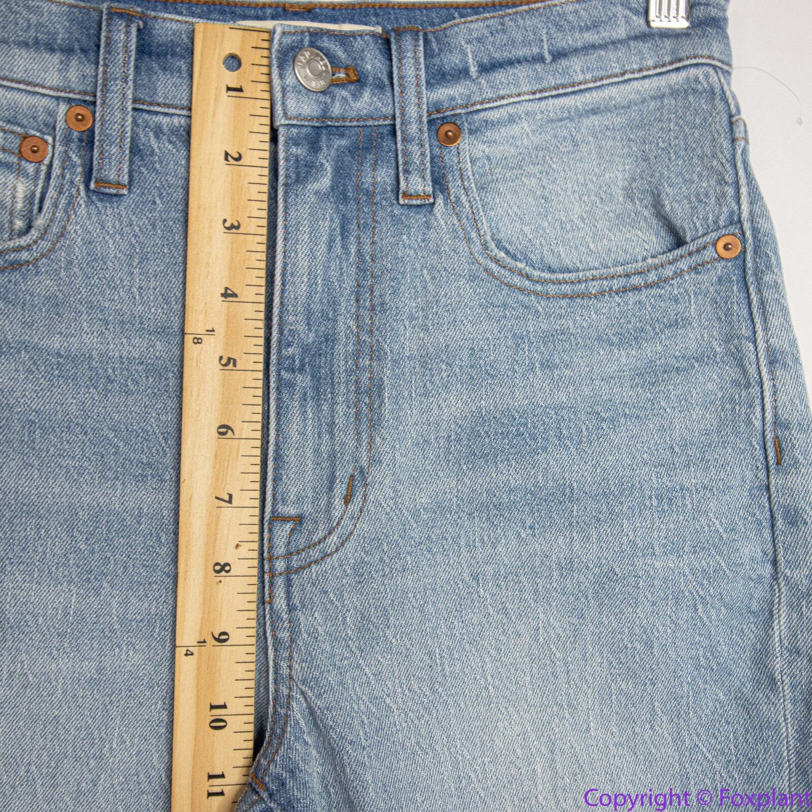 NEW Madewell The High-Rise Slim Boyjean in Prentice Wash: Ripped Edition, 25 comfort stretch The cut: Easy in the (high) waist, our signature boyfriend fit has a slim-but-still-relaxed leg (think a vintage men's jean cut for you). The fabric: Our best-selling Heritage Stretch organic cotton denim has an old-school look and a touch of give for a perfectly broken-in feel. 99% organic cotton/1% spandex Heritage Stretch denim. Raw hems, ripped knees. Machine wash. Item ND555 Measurements shown in photos are approximate and provided as a courtesy, not a guarantee of fit. Sometimes jean inseam measured by a yardstick from the crotch to the hem may be a little bit shorter than using a soft tape measuring along the seam. Excellent condition. No noticeable flaws or stains or damages. Smoke free, pet free home. Actual colors may vary due to differences in lightings and computer monitors.