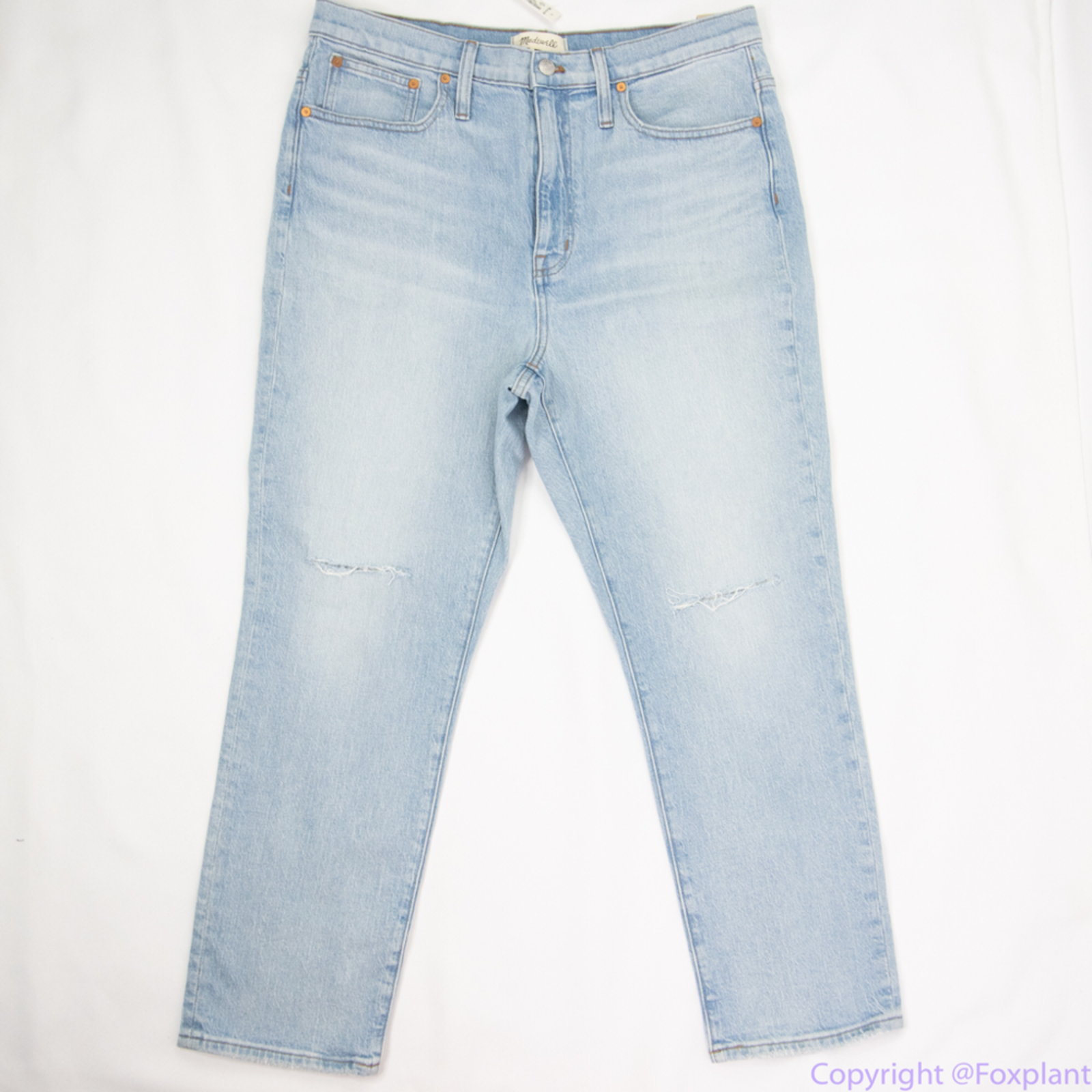 Easy in the (high) waist, our signature boyfriend fit in a light indigo wash with rips at the knees has a slim-but-still-relaxed cropped leg. Think a vintage men's jean cut to flatter you. Made of our best-selling Heritage Stretch denim that has an old-school look and a touch of give for a perfectly broken-in feel. Approx. laid flat measurements: 18’’waist; 12 3/4“ high rise, 7 1/4“ straight leg opening, 26 1/2“ cropped inseam. 99% cotton/1% spandex comfort stretch denim. Ripped knees. MC556