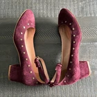 Brand: Madewell Size: 7.5 Color: Maroon / Burgundy Condition: Excellent pre-owned condition Material: Suede upper, leather lining, synthetic sole Details: Style: Madewell Inez Studded Ankle Strap Block Heel Rich maroon suede with brass stud detailing Adjustable ankle strap for secure fit Closed toe Comfortable low block heel Versatile β dressy or casual Please review pictures before purchasing π Super Fast Shipping: I ship out the next business day! π Non-smoking, pet-free home β all packages are bundled with love & care. π I always accept reasonable offers! Feel free to reach out with any questions!