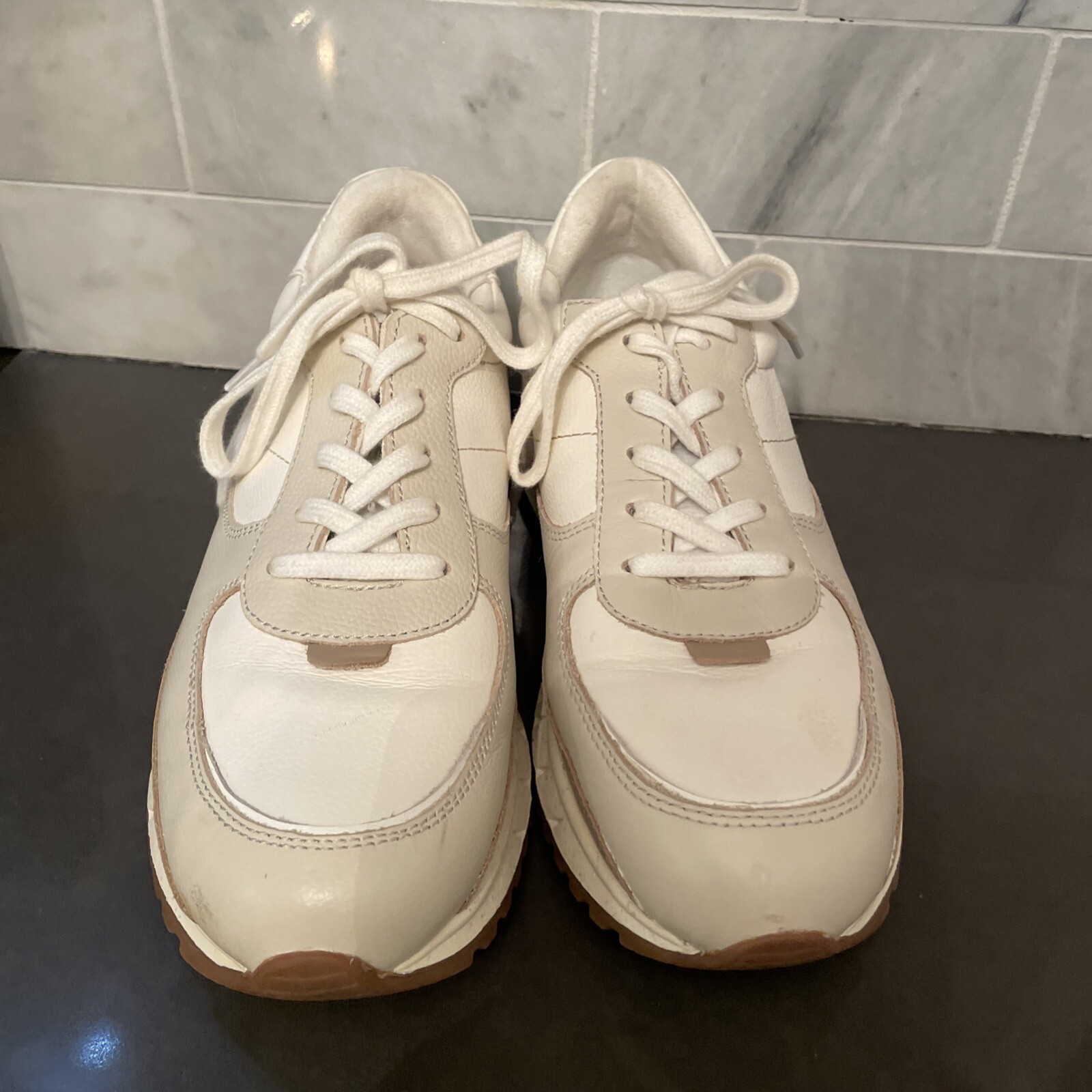 Equal parts old school and new, these trainers have MWL Cloudlift insoles for a supercushy, ultra-supportive fit that feels like walking on a, well, you know. They're also eco-friendly with recycled cotton lining and rubber outsoles. And the leather is sustainable too. Lace-up style Removable MWL Cloudlift cushioned footbed Leather upper/ textile lining/rubber sole Good condition; see photos, as they show condition.