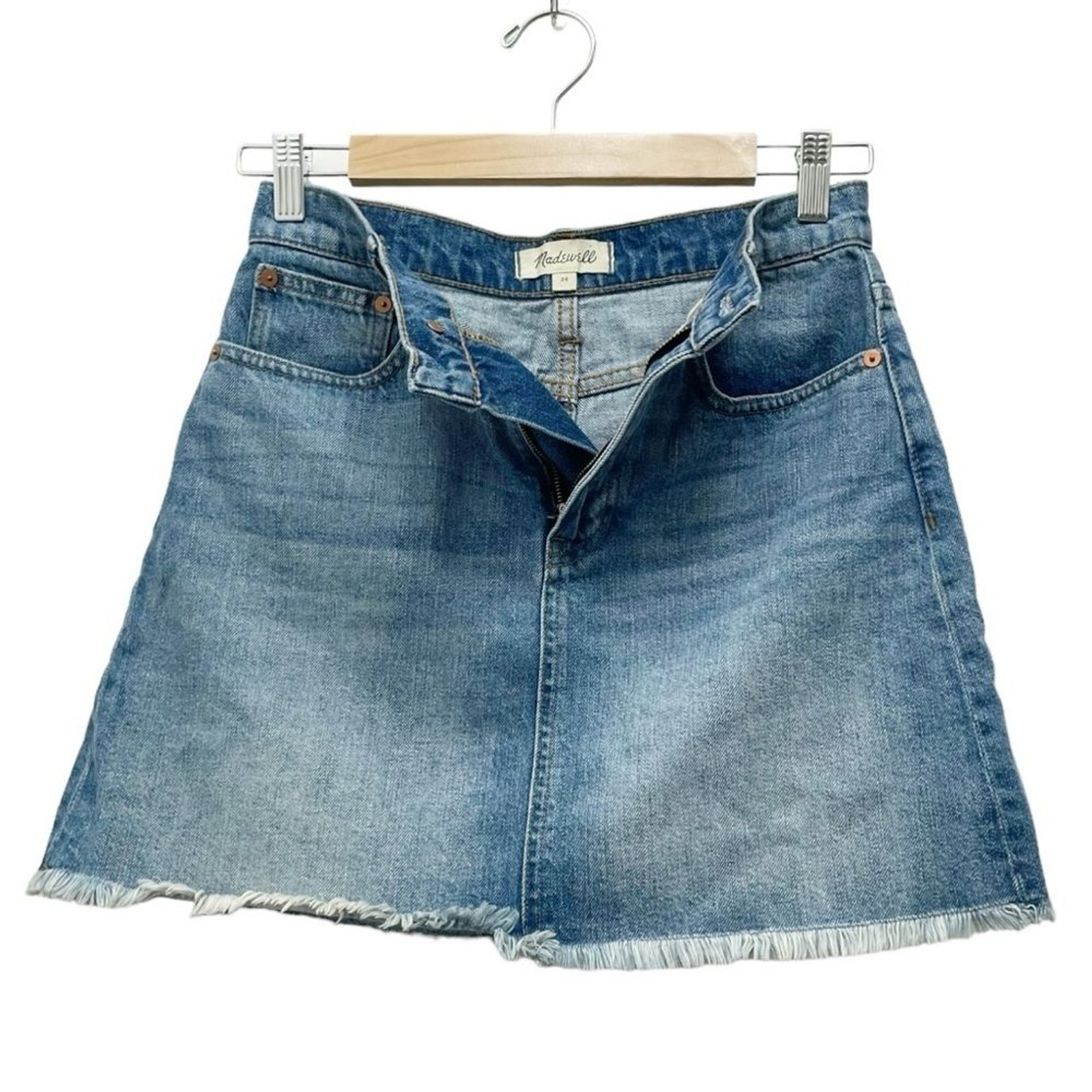 Madewell Rigid Denim A-Line Mini Skirt in Medium Wash Fluffy Hem Edition Size 26 | 2 This classic A-line denim mini skirt has a fluffy hem detail, giving it a playful feel that works with a fitted tee or tailored top. Zip fly with button closure. 5-pocket design. 100% cotton. Machine wash. Excellent preowned condition. BRAND: Madewell SIZE: 26 | 2 COLOR: medium wash WAIST: 14” HIPS: 19” LENGTH: 15” CONDITION: previously owned ORIGIN: China Marked sizes will vary by designer • All measurements are approximate and taken flat in inches • Color may vary on your screen. •Fast Shipping •Small Business •Carefully Packaged, Smoke-Free •5-Star Seller WB