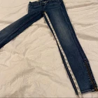 Excellent preloved condition Light distressing throughout Ankle zip Cropped style Skinny with stretch Approximate measurements in pics Waist 13 Rise 7.5 Inseam 27 Length 35 Dog friendly home Smoke free home Questions just ask Bundle and save Make offer