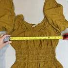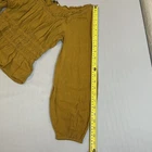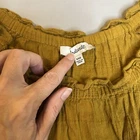 Elevate your wardrobe with this stunning Madewell Sophia Top. Crafted from 100% cotton, this plaid blouse features a scoop neckline, long balloon sleeves, and a pullover closure. The gold textured fabric and ruffle accents add a touch of bohemian charm, making it perfect for travel, parties, or casual wear. This cropped top comes in size XXS and is machine washable for easy care. Its regular fit and easy-to-wear design make it a must-have addition to any wardrobe. Whether you're dressing up or down, this Madewell blouse is sure to turn heads. -Color Antique gold -Smoke free location