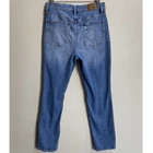 Madewell's waist-accentuating high rise and tapered legs, these are "mom jeans"...if your mom was a '90s supermodel. Constructed with premium denim that combines the holds-you-in structure of rigid with a touch of flattering stretch fro day-one comfort. Medium wash. Fading and whiskering. Intentionally distressed with rips and knee holes. High rise. Zipper fly with button closure. 5-pocket style. Belt loops. Slim leg. Ankle length. Color Wash: Denman Size 28 Measures Flat Approximately: 14.5" Waist, 17" Hips, 11.5" Rise, 27" Inseam 79% Cotton / 20% Recycled Cotton / 1% Elastane Machine Washable **These jeans are preowned, and show normal wear! No stains or holes! There is some stretching around the distressing at the knees from normal wear! SEE PICTURES! Great Condition!**