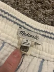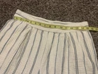 These Madewell White Stripe Pull On Crop Muslin Wide Leg Cotton Pants in Women’s Size Medium are perfect for various occasions including travel, parties, casual outings, or business meetings. The pull-on closure and relaxed fit offer comfort and ease of movement, while the cropped style adds a trendy touch. Made from machine washable cotton fabric with a striped pattern, these pants feature a flat front, elastic waist, and pockets for added convenience. The versatile white color and wide-leg silhouette make these pants a wardrobe staple for all seasons. Material is textured and thick. See photos for measurements and details. Great, comfortable pants!