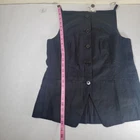 This elegant black button-front vest top by Madewell offers a sophisticated look for any professional setting. Made from a soft lyocell and cotton blend, it ensures comfort and style. • Button-front closure • Sleeveless design • Made in Indonesia • Fitted silhouette 48% Lyocell 33& Cotton 19& Linen Size: Womens 6 Measurements: length 23 in / 58 cm Pit to Pit 16.5 in / 42 cm Condition: New With Tags