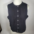 This classic black sleeveless sweater vest by Madewell offers versatile styling options. Crafted from a cotton and polyester blend, it provides comfort and durability. The button-front design adds a touch of sophistication, making it suitable for both casual and professional settings. • Button-front closure • Made in India • Machine wash cold • Gentle cycle • Reshape and lay flat to dry 85% Cotton 15% Polyester Size: Womens M Measurements: Length 19.5 in / 50 cm Pit to Pit 19 in / 48 cm Condition: New With Tags
