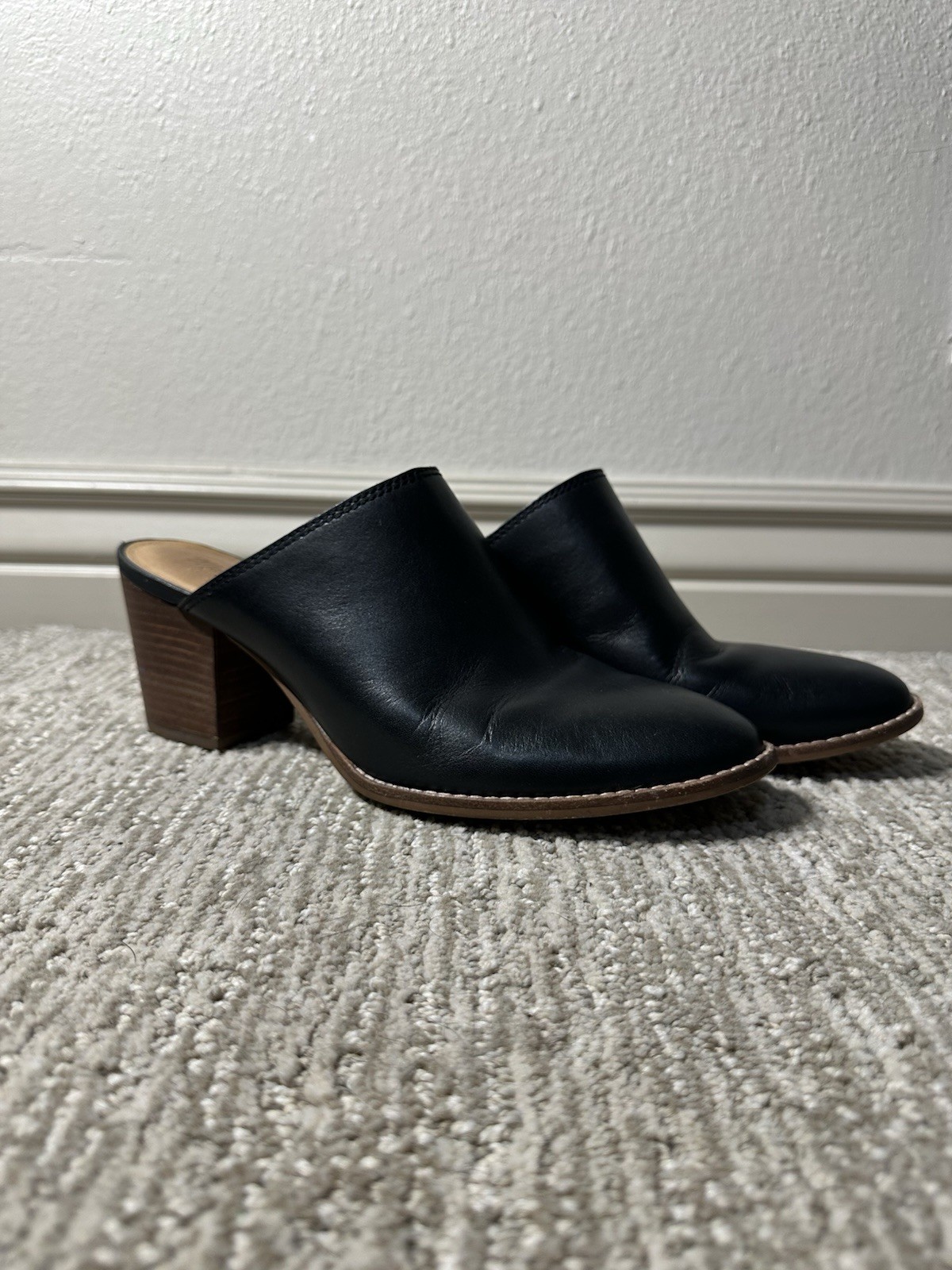 Classic and versatile Madewell women’s black leather mules in size 9. Features a smooth genuine leather upper, stacked 3-inch block heel, and comfortable slip-on design. Made in Brazil. Perfect for work, casual outfits, or a minimalist capsule wardrobe. These are gently used with normal wear on the soles (shown in photos). Uppers and heel area are in great condition. ⸻ Item Details • Brand: Madewell • Style: Leather Mule / Slip-On Heel • Color: Black • Women’s Size: 9 • Heel Height: Approx. 3” • Upper Material: Genuine Leather • Lining: Leather • Outsole: Synthetic • Made in Brazil • Style Code: J8560 ⸻ Condition Gently worn. Wear present on the outsoles from use (see photos). No major flaws to note. ⸻ Madewell leather mules, women’s black heels, block heel mules, slip on shoes, minimalist shoes, classic leather heels, capsule wardrobe, everyday heels, work shoes women, stacked heel mule