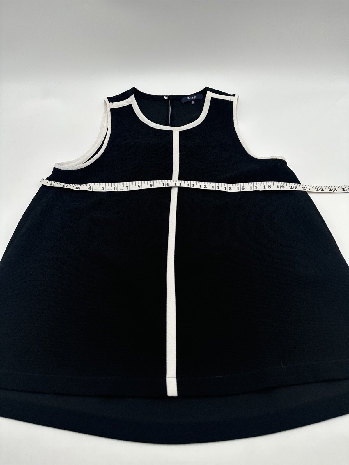 This is a black Madewell blouse for women in size M. It features a solid pattern, sleeveless style with a halter neckline and pullover closure. Made of polyester, this regular fit blouse has a classic and basic design, suitable for casual occasions. It is easy to care for and has a button detail. *Check the images above for the flaws and measurements of the item.