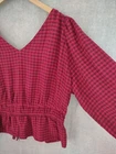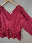 Welcome to Aspen Crossing, your destination for modern western bohemian style reflecting the rugged beauty of our American West. Madewell Top Womens Extra Large Red Black Bohemian Crinkled Stretch Viscose Plaid Long Sleeve Peplum V-neck Tie Waist $88 22" LENGTH: Measured from the top of the shoulder to the hem. 23" CHEST WIDTH: Underarm to underarm, measured flat from left to right. It is always best to compare the measurements above with a top that fits you comfortably. CONDITION - Excellent pre-owned condition. All items are cleaned per EBAY standards. Not spot treated. See the photo gallery to view this items measurements and condition. SHIPPED - USPS First Class Mail unless item weight requires priority mail. RETURNS accepted, must be returned within 30 days in original condition to receive a full refund. SHIPPING AND HANDLING We ship all packages within five business days Monday through Friday except Holidays. Consolidated shipping is available for multiple purchases. Thank you for helping our planet and buying previously owned and loved items. I am grateful for your business. Enjoy! Check out our eBay store and follow us. There are new listings daily. CUSTOM SKU: Disclaimer: While we make every effort to capture the most accurate depiction of every item when photographing, colors may vary from screen display to in person therefore we cannot guarantee exact shade on any item. Message us if you have questions.