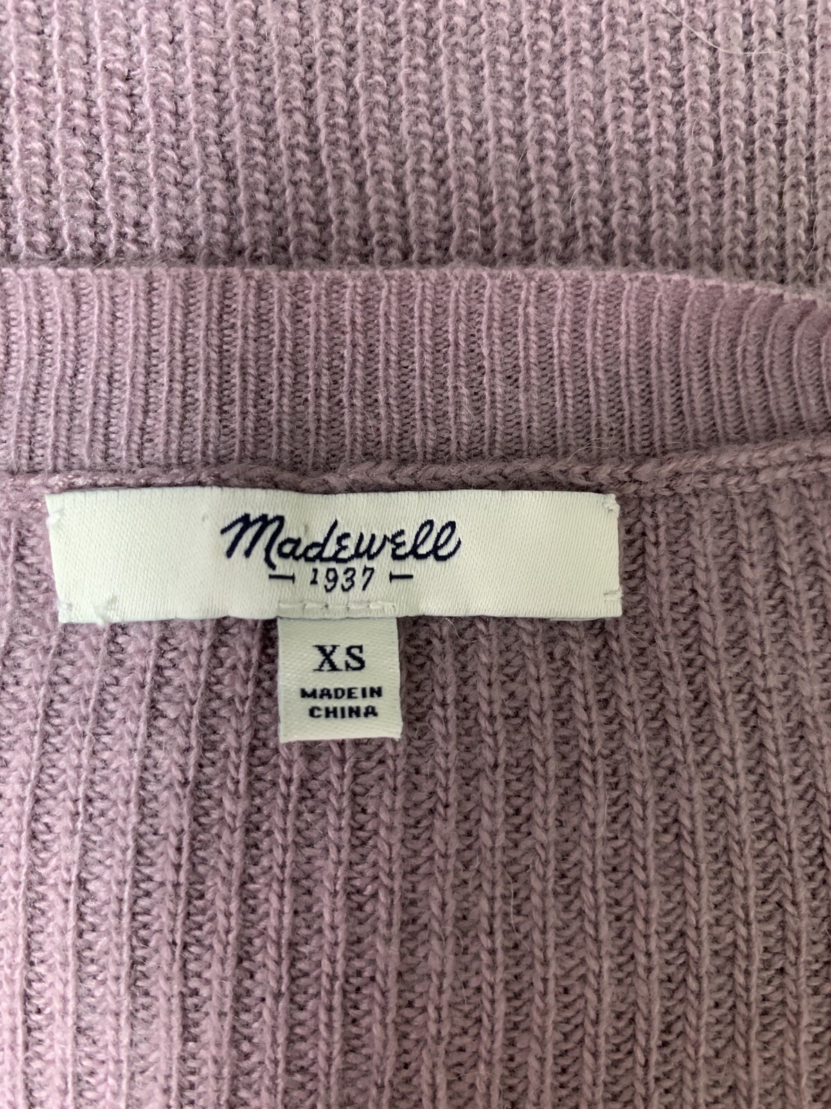 Madewell Women’s Size XS Long Sleeve Hi Low Round Neck Purple Sweater. Material tag has been cut off so I am not sure what the material is Armpit to armpit 31” Total length 21.5”/24” Measurements taken laying flat Excellent condition no rips or stains Smoke free and pet free home