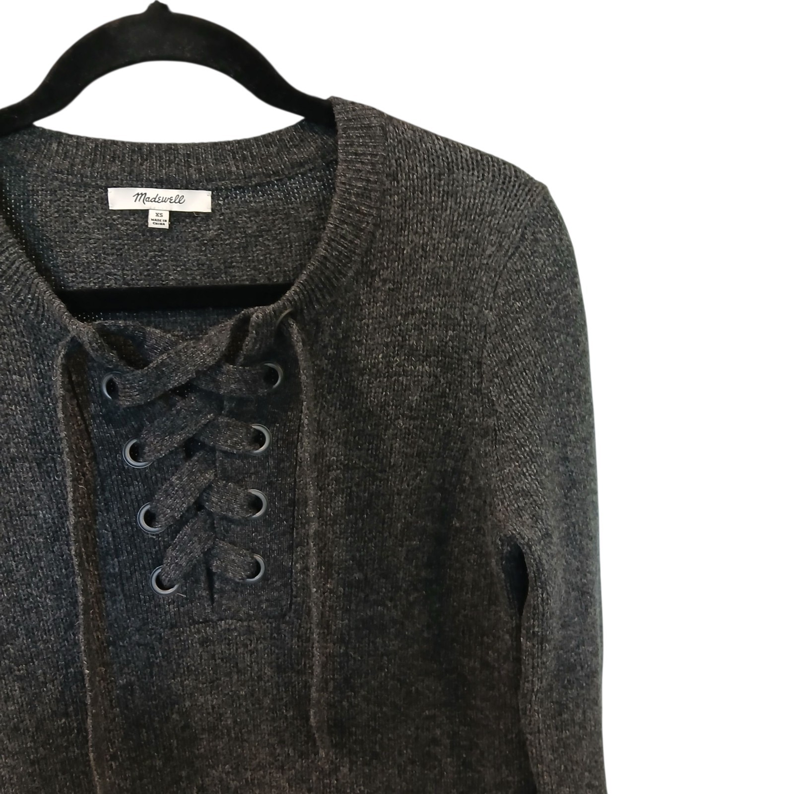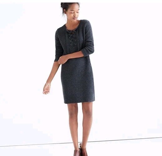 Madewell XS Merino Wool Long Sleeve Lace Up Front Sweater Dress Carbon Gray *Measurements in Photos All Reasonable Offers Accepted! 100% Satisfaction Guaranteed! *NonSmoking Home *Please if you are not satisfied please contact me and I will correct the situation. Your satisfaction is very important to me. Thank you!