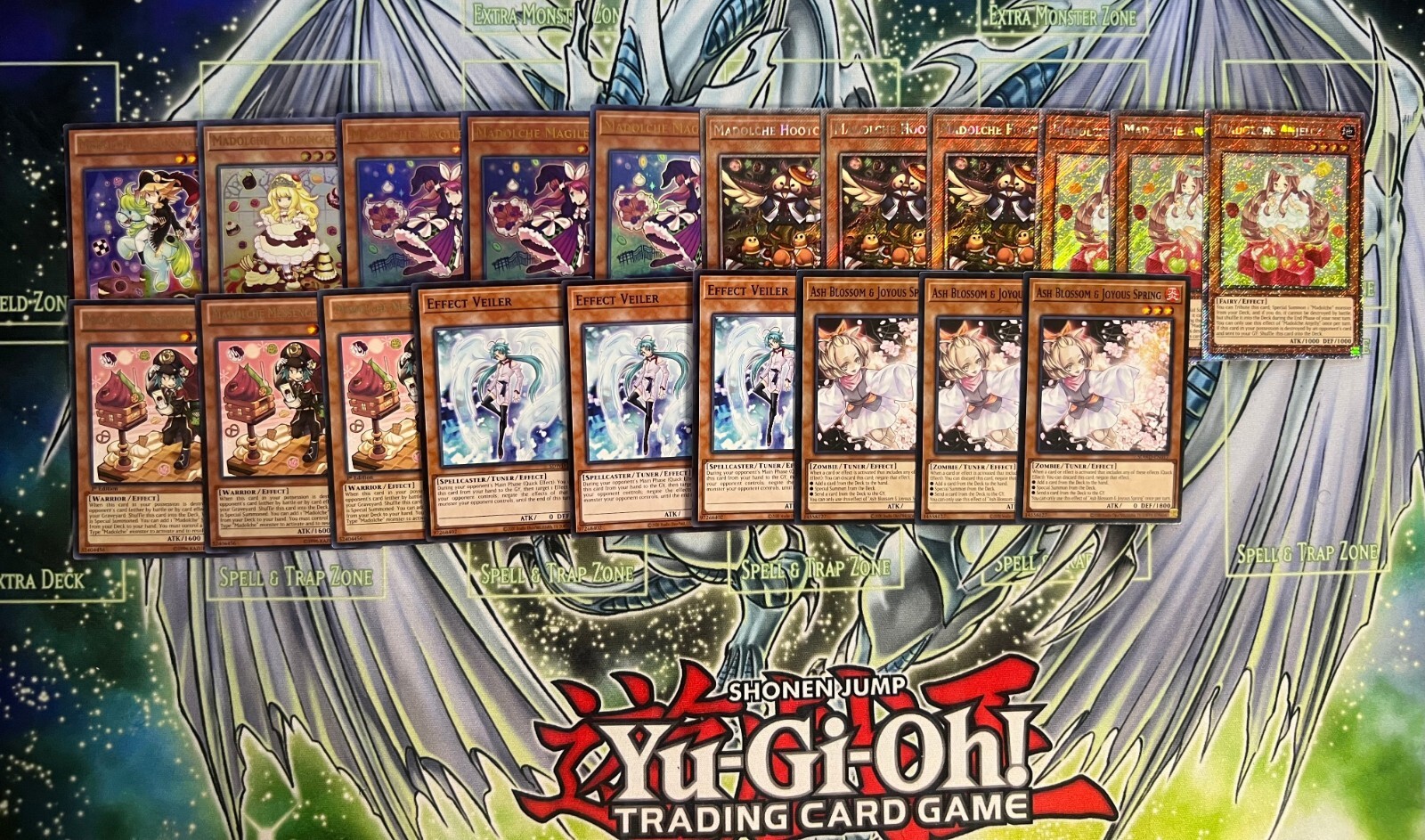 Hello! You are purchasing the deck list below, the cards will be English, real, and near mint to light play condition at worst. All decks are built with the lowest rarities for cards in mind to keep the price of the deck low and affordable for all duelists! Some cards may be in speed duel printing if this is the cheapest available copy of the card, but do not worry these are real cards and legal for tournament use! Purchase with confidence and safety! As an added bonus one pack of card sleeves will be included with your deck! Thanks again and good luck dueling! Now here's the decklist; Monsters: 1| Madolche Chouxvalier 1| Madolche Puddingcess 3| Ash Blossom & Joyous Spring 3| Effect Veiler 3| Madolche Messengelato 3| Madolche Anjelly 3| Madolche Hootcake 3| Madolche Magileine Spells; 1| Monster Reborn 1| Called By The Grave 3| Twin Twisters 3| Dark Hole 3| Madolche Salon 3| Madolche Chateau 3| Madolche Ticket Traps: 1| Madolche Tea Break 1| Madolche Promenade 3| Madolche Nights 3| Solemn Warning Extra Deck; 1| Akashic Magician 1| Gaia Saber, The Lightning Shadow 1| Maestroke The Symphony Djinn 1| Number S39: Utopia The Lightning 1| Number 39: Utopia 1| Gagaga Cowboy 1| Steelswarm Roach 1| Madolche Puddingcess Chocolat-A-La-Mode 2| Madolche Teacher Glassouffle 3| Madolche Queen Tiaramisu 3| Madolche Queen Tiarafraise