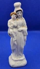 Hand press molded earthenware Madonna and Child Figurine White 4.5" Staffordshire Mantilla on head Faces and hair painted Gold accents Cross molded on base No mark No chips, cracks, or crazing