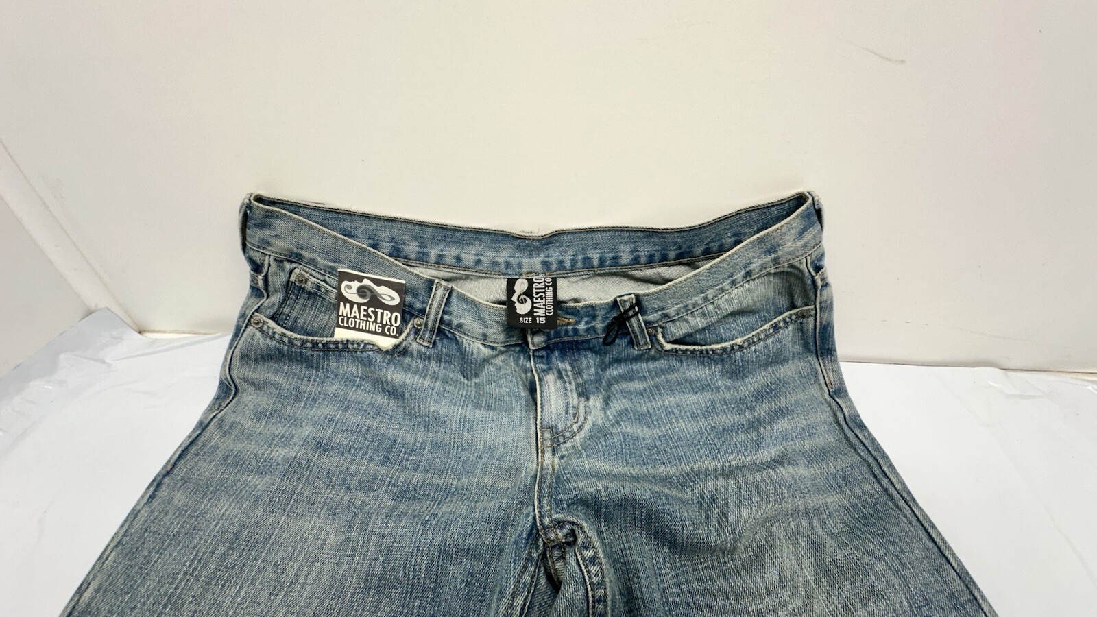 The Maestro woman's jeans in size 15 31” length feature a stylish graphic design on the leg, adding a unique touch to the classic blue flared style. Designed for regular fit, these jeans are ideal for women looking for a trendy and comfortable wardrobe staple. Perfect for casual or dressed-up looks, these jeans from Maestro Clothing Company are a versatile and fashionable choice for any woman's wardrobe.