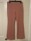 The Maeve Anthropologie Margot Kick Flare Cropped Pull-on Pants in pink and orange, size small, are perfect for casual occasions during the summer and spring seasons. These polka dot patterned pants feature a pull-on closure and a flat front design. Made from a blend of polyester and cotton, these stylish pants have a flared leg style and are machine washable for easy care. The Anthropologie brand ensures quality and fashion-forward design for the modern woman looking to add a pop of color to her wardrobe.