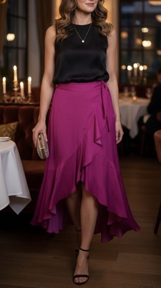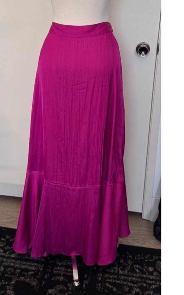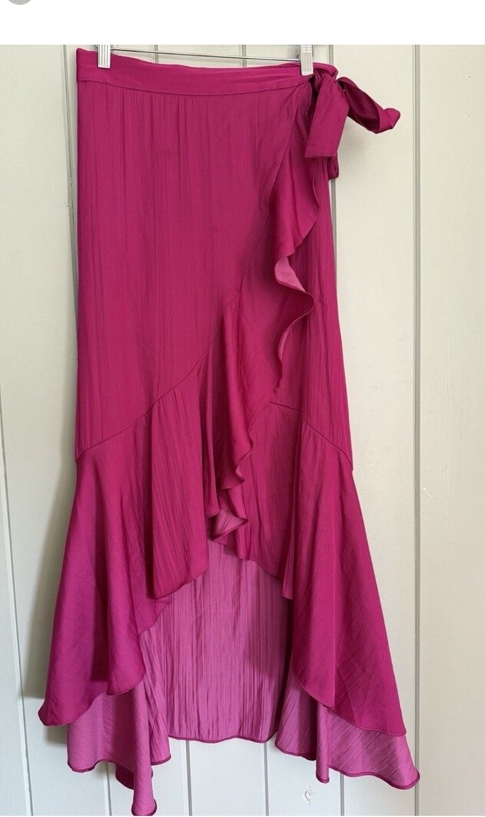 Maeve Anthropologie Ruffled Wrap Maxi Skirt S Small Fuchsia Pink Tie Flowy