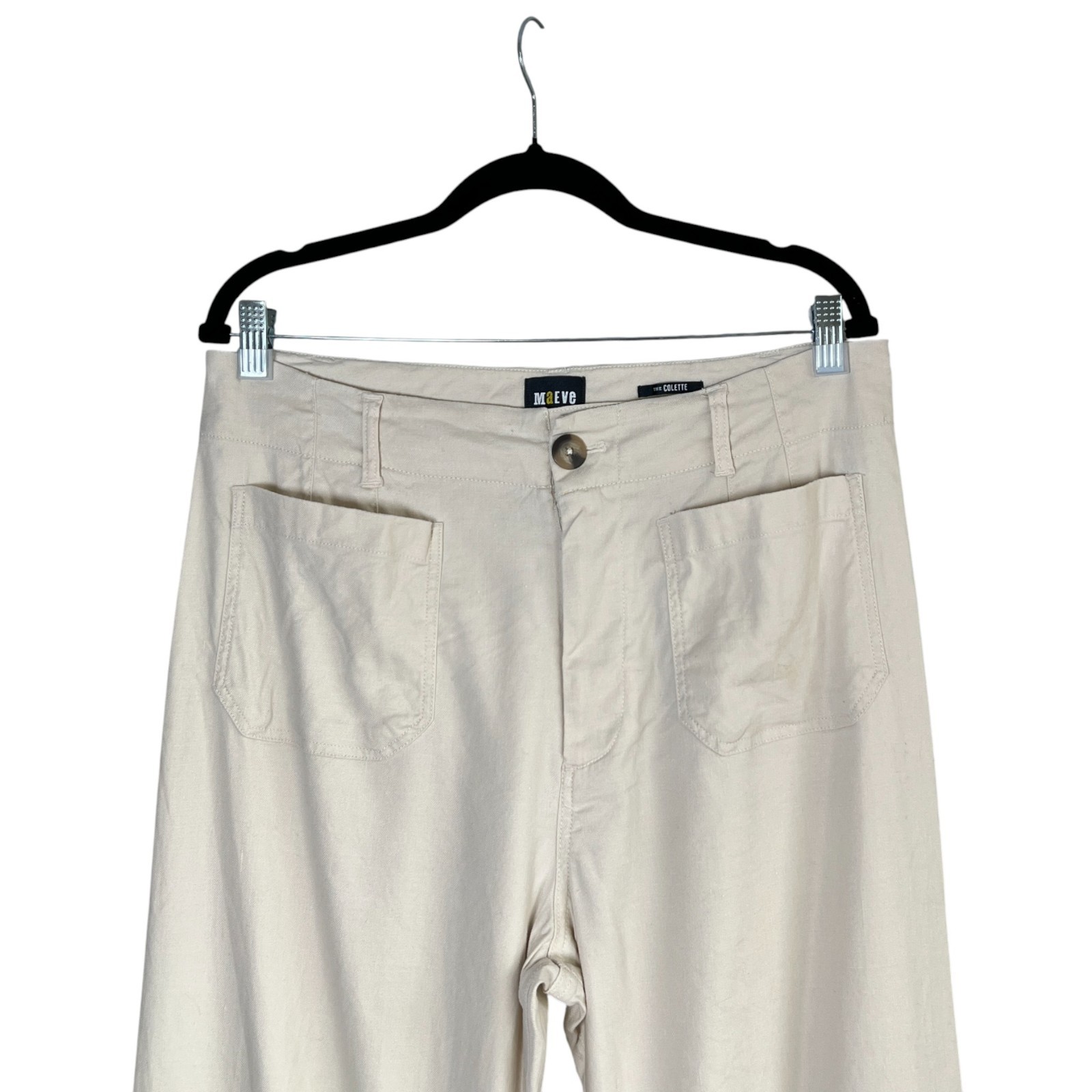 Maeve Anthropologie The Colette Wide Leg Linen Blend Pants Ivory Size 31 Cropped Wide Leg Linen blend with stretch Excellent pre-owned condition Measurements (approximate, laying flat) Waist: 17" Inseam: 27" Rise: 14" Style: Boho, Preppy, Versatile, Nautical, Coastal