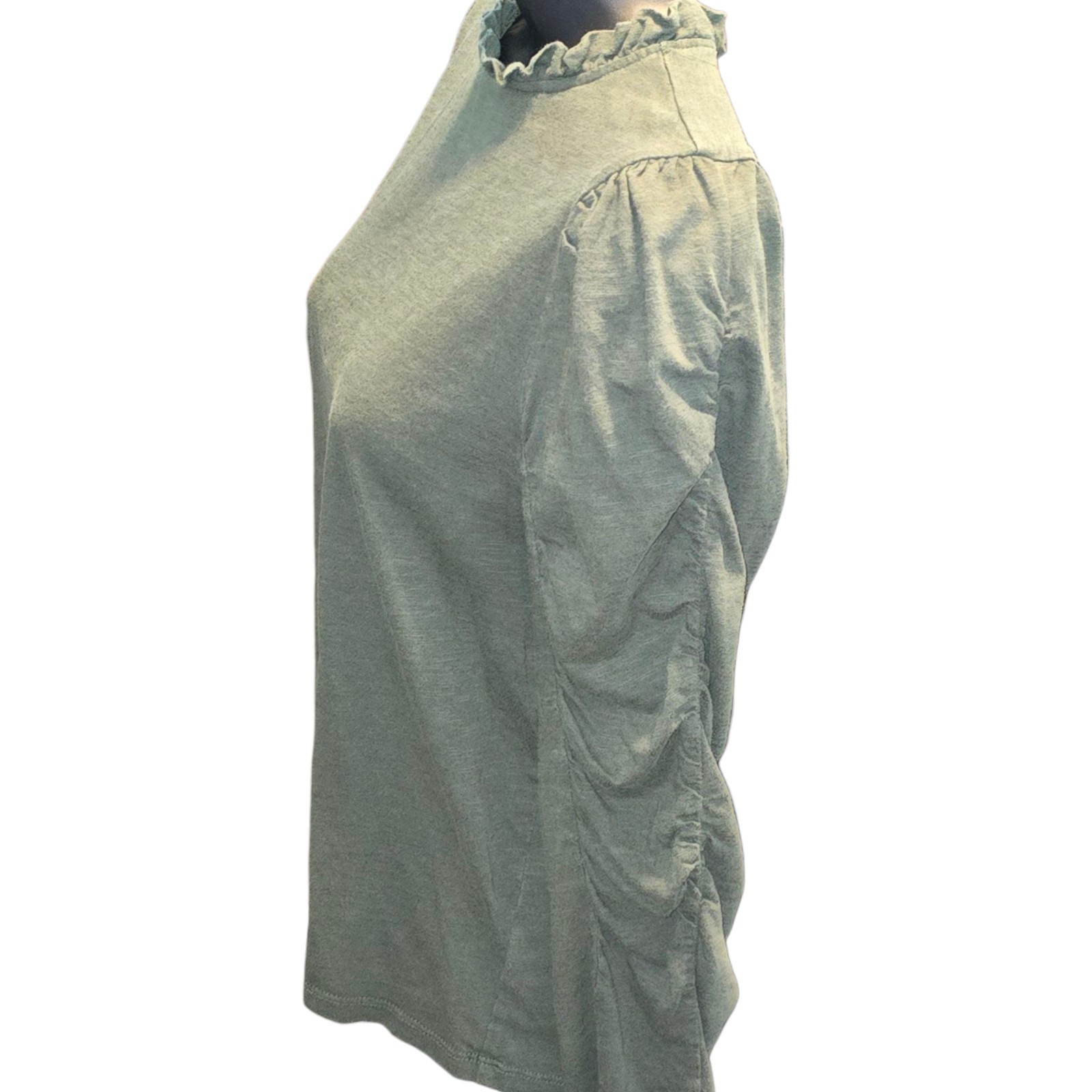 The Maeve Green Ruched Sleeve Shirt in size Medium is a stylish blouse from Anthropologie featuring a feminine ruffle neck design. This olive green top is perfect for women looking for a chic and comfortable addition to their wardrobe. The ruched sleeves and medium size make it a versatile piece that can be dressed up or down for any occasion.