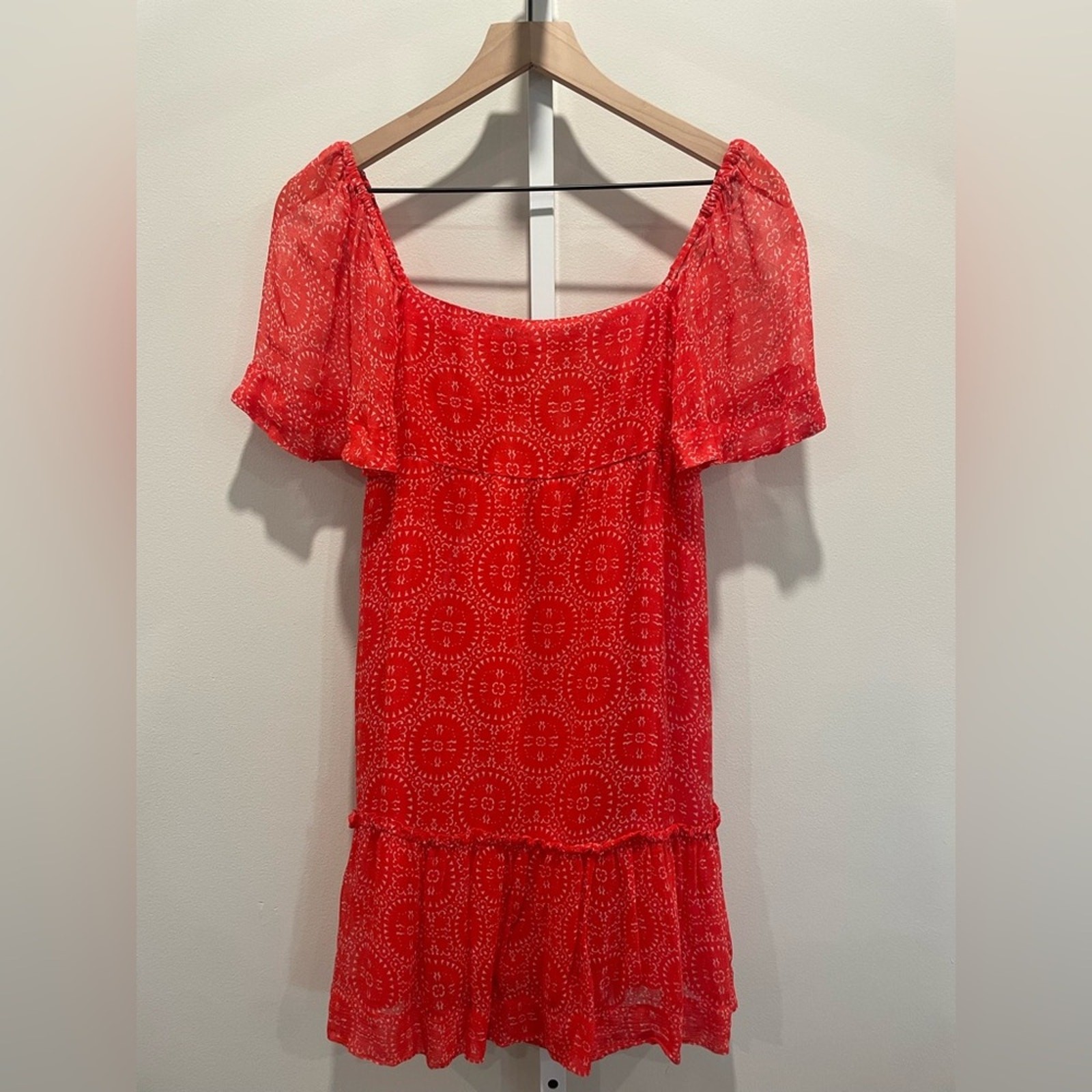 Pre Owned Excellent Condition Color Orange and White Size XXS Side pocket pull over style open back 100% Viscose
