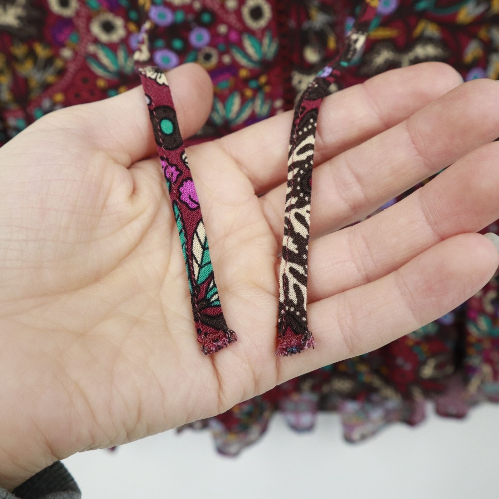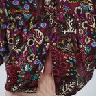 This blouse is so bohemian-chic, it might just start playing folk music when you wear it. Ideal for adding flair to your wardrobe, no guitar required. • Button-down closure for adjustable style • Ruffle hem adds a playful touch • Long sleeves for extra coverage • Lightweight viscose material for comfort • Vibrant floral pattern stands out
