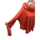Wrap yourself in the cozy charm of the Maeve by Anthropologie pullover sweater. This delightful piece, in a vibrant orange hue, features a relaxed fit and a soft hacci knit that promises all-day comfort. The cowl neck and long sleeves add a touch of elegance, while the ruffled hem brings a playful flair. Perfect for casual outings, whether you're meeting friends for brunch or enjoying a leisurely stroll in the park. This pre-owned sweater is ready to become your new favorite go-to for effortless style. Keywords: Maeve sweater, Anthropologie, orange pullover, women's sweater, soft hacci knit, cowl neck, ruffled hem, casual wear, relaxed fit, long sleeve sweater, pre-owned sweater, women's fashion, cozy sweater, fall fashion, stylish pullover. Brand: Maeve by Anthropologie Size: M Style: Pullover Color: Orange Department: Women Type: Sweater Material: Soft Hacci Knit Sleeve length: Long Sleeve Neckline: Cowl Neck Features: Ruffled Hem, Long Sleeves Pattern: Solid Fit: Relaxed Occasion: Casual