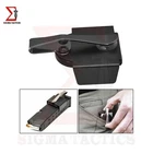 OVERVIEW For most 9mm /.40SW pistol magazines on the market no matter single or double stack. **COMPATIBILITY DISCLAIMER** Magazines with over sized base plates may not sit as low as shown If you have a Springfield XD - test your magazine to make sure it is magnetic. (Most extended magazines are not magnetic) Magpul and ETS Glock magazines do not work with the it Glock G19 - 10 round mags do not hold very well Works only inside the pocket -- Does NOT work outside-the-waistband - on a belt KEY SPECS Black nitride finish with machined steel Head has fasteners in stainless steel Black Oxide Torx The grip pad stays to the Mag within any conditions The pocket clip is made of low-ride titanium The neodymium magnet is powerful enough to hold most magazines CONTENTS 1 x in-The-Pocket Mag Holder NOTES **COMPATIBILITY DISCLAIMER** Magazines with over sized base plates may not sit as low as shown If you have a Springfield XD - test your magazine to make sure it is magnetic. (Most extended magazines are not magnetic) Magpul and ETS Glock magazines do not work with the it Glock G19 - 10 round mags do not hold very well Works only inside the pocket -- Does NOT work outside-the-waistband - on a belt