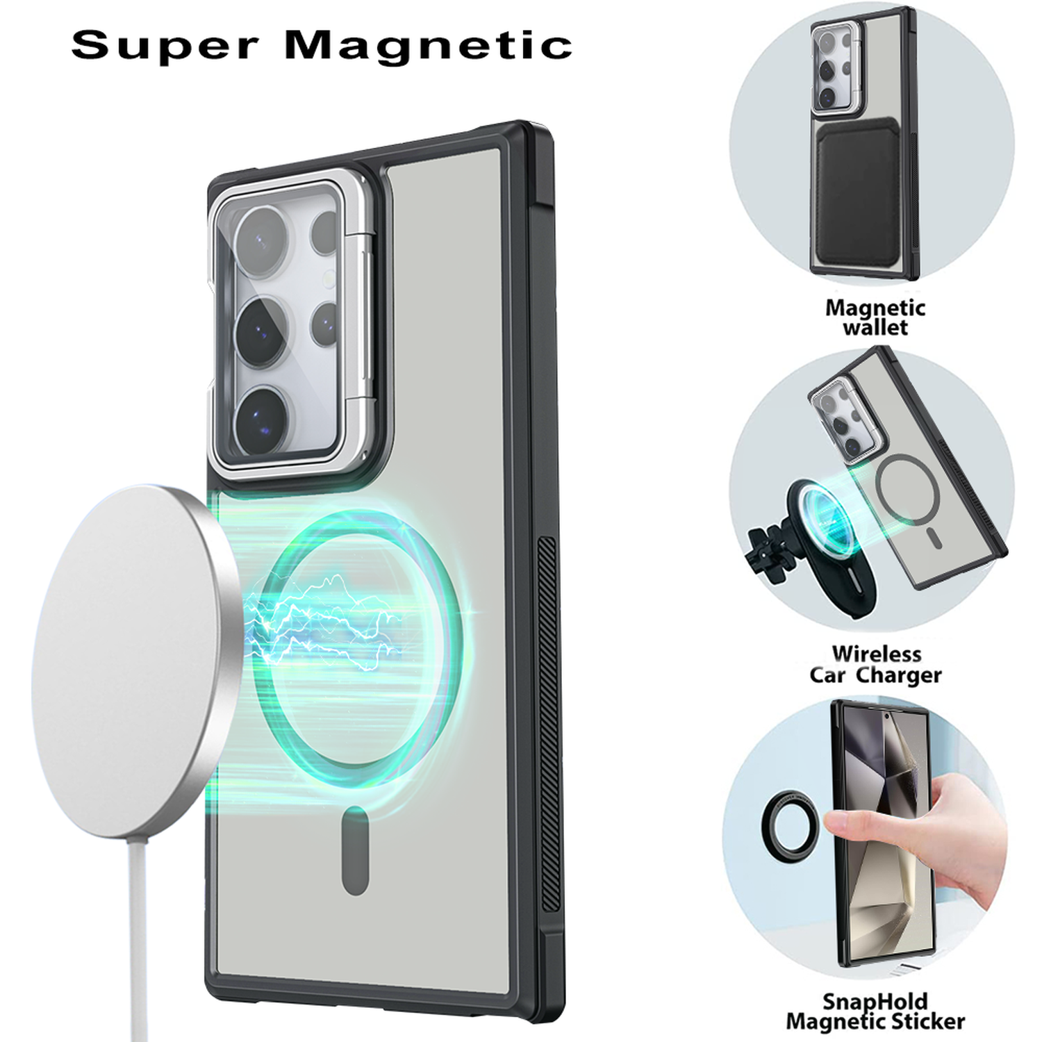 Acrylic+TPU material: Combining the best of both worlds, this phone case is made of high-quality acrylic and TPU materials for durability and flexibility. Adjustable lens stand: Featuring a retractable lens stand, this phone case allows you to adjust the angle of your phone's camera for the perfect shot every time. Wireless charging compatibility: Designed to work seamlessly with wireless charging technology, this phone case ensures you can stay connected without any hassle. Matte finish design: With a sleek matte finish, this phone case provides a soft and smooth texture for a comfortable grip and a stylish look.