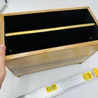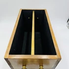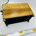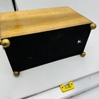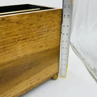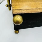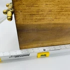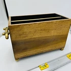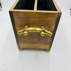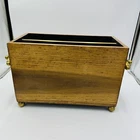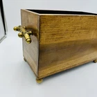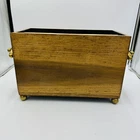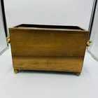 This exquisite magazine holder is a vintage Hollywood Regency piece that will add a touch of elegance to any living room. Crafted from solid wood with polished brass handles, it features two compartments perfect for organizing your favorite magazines. The item measures 16 inches in length and 11 inches in height, and requires no assembly. The rich brown color of the holder creates a warm and inviting feel, while the original and authentic design gives it a unique character. This magazine rack is a great addition to any home, whether you're looking to organize your reading materials or simply add a touch of vintage glamour to your decor.