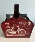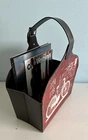 Modern magazine holder in leather. Measures 15Lx16.5Hx7W inches. Magazine organizer comes in cherry and tan color with postal writings. Features Single slot with a handle with belt hook and loop design for easy handle and support. Crafted with fiberboard and manmade leather.