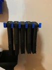 3d Printed AR Magazine rack - holds 5 mags. Has screw holes to mount to wall. Will hold any type of mag so long as it has a bottom lip - anything except for metal GI mags. Available in black, white, grey, or blue.