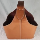 Magazine Holder Tote Tool Basket Shopping Bag Brown Leather 15"x9"x14" Vintage I can't figure out if the printing on the bottom is the manufacturer PLEASE REVIEW PHOTOS FOR CONDITION. SOLD AS IS. ASK IF YOU HAVE QUESTIONS OR NEED MORE PHOTOS. All items cleaned (laundered-cleaned) or disinfected sprayed unless new. I can combine shipping Check out my other offerings, and follow me for future updates.