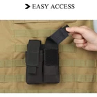 9MM Magazine Pouch Double Molle Pistol Mag Pouch Tactical Pistol Magazine Pouch Mag Holder Tool Organizer Holder Tool Holster Features: 1.【Durable Material】The tactical pistol magazine pouch made of high quality military 600D nylon material, tear-resistant, wear-resistant. The mag pouches provides optimal storage for most pistol magazines. 2.【Molle System】The molle system on the back can be hung on the equipment with molle module, such as tactical vest, belt, pack or other MOLLE compatible gear; easy attachment and removal. 3.【Hook and Loop】The pouch has a secure hook and loop fastener cover that can fit practically any pistol magazines, keep different size magazine reaches the most stable state. And a steel drain hole rivet in the bottom. 4.【Widely Used】The mag pouch can also be used to store folding knives, multi-tools, mini flashlights, and other small essentials. Specifications: 1. Material: 600D Nylon Fabric 2. Size:14cm*10cm/5.5in*4in 3. Weight:75g 4. Color: Black/ACU/CP/Khaki/Army Green Package Included: 1x Tactical Double Molle Magazine Pouch
