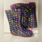 Colorful heart pattern. Durable and waterproof. Easy pull-on handles.