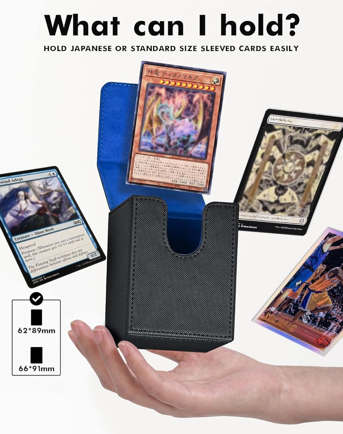 πππππππ πππππππβΆ Made of sturdy, durable PU leather material on the outside, and soft microfiber lining inside. non-PVC materials for safe storage even when you don't have time to sleeve, protect your cards and keep your valuable cards in mint condition ππππ ππππππππβΆ ZLCA 100 card deck box size - 3.1*3.2*4.1 inches, holds up to 100+ standard size gaming cards with single sleeve or 200+ unsleeved new cards. Not compatible with Top loaders ππππππ ππππππβΆ Tight Stitching, powerful 4 pairs of magnets keep the card holder secure during transportation. Even when fully loaded and turned upside down, the card deck case stays shut tight πππππ πππβΆ Suitable for a variety of TCGs, CCGs, LCGs & other collectible cards. Compatible with Magic The Gathering YuGiOh, Cardfight Vanguard, Duel Masters, Panini football cards and many more πππππππππππ ππππ ππππβΆYou will also get 2 trading card dividers, help you store your cards, or write index tabs on these cards Product Description