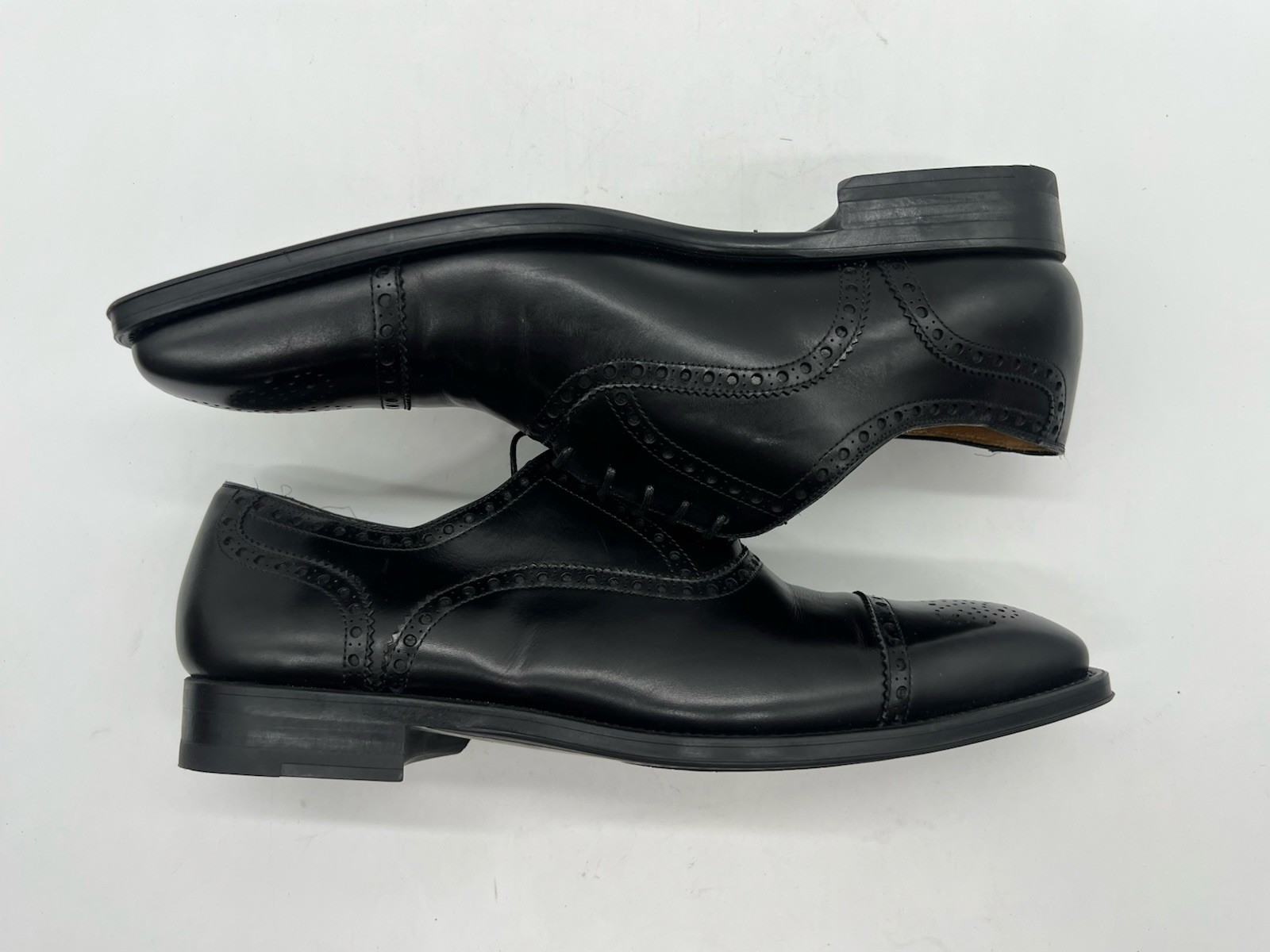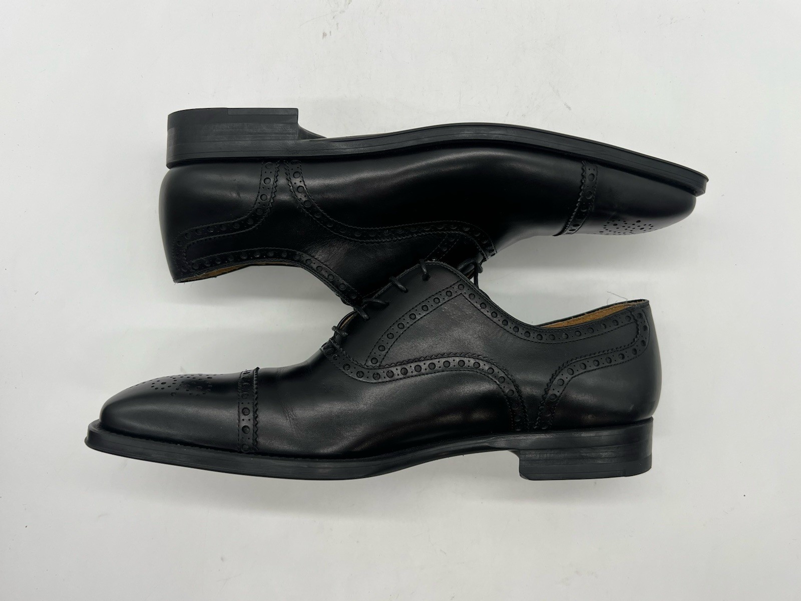 Magnanni Medallion Men 12M BLack Leather Cap Toe Wingtips Oxford Shoes MSRP $425. Shoes are in used condition and have signs of wear but shoes are in excellent condition. Upper leather is in excellent condition and very clean , inside is clean and the soles are in excellent condition. Nice comfortable shoes for casual wear or business wear. Condition is pre-owned. Shipped with ups or usps priority mail. Sold as pictures. Thank you! Feel free to message me for any questions. Thank you